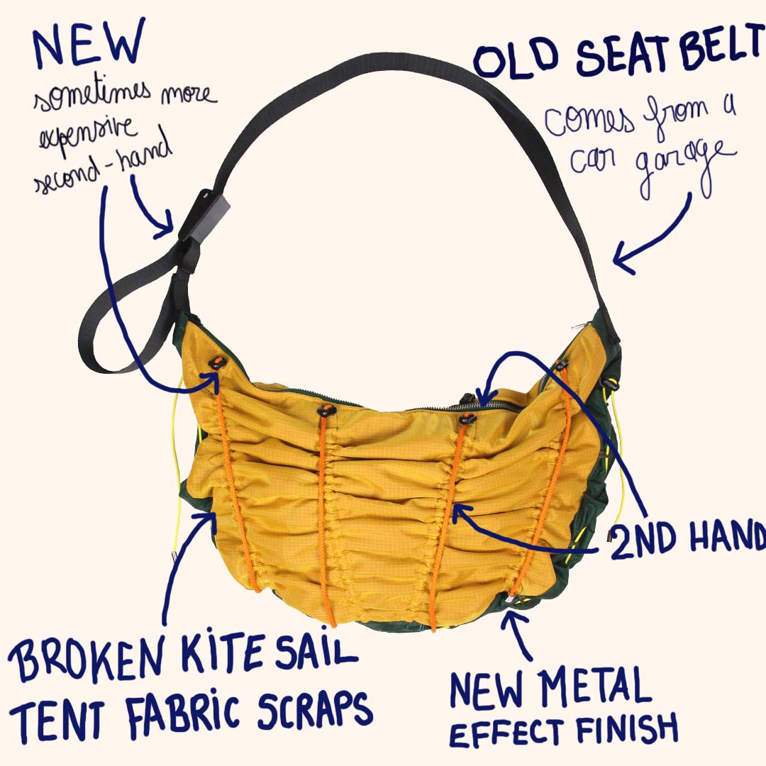 We pride ourselves on using predominantly reclaimed materials in our creations, sourced from second-hand garments that were no longer wearable or from vintage haberdashery stocks.