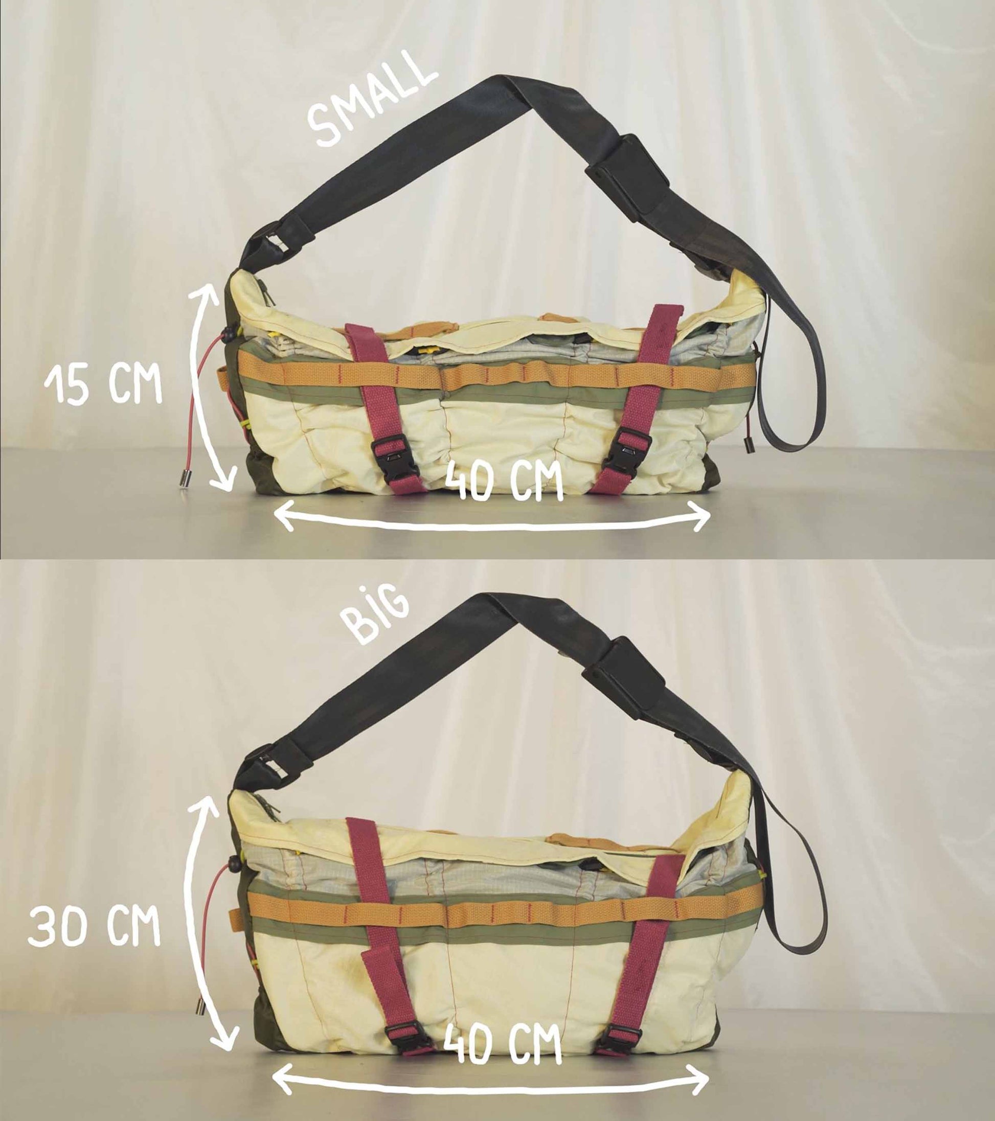 Tantine is your future bestie ! With adjustable cords and straps you can effortlessly change the size of your bag. Wear it as a crossbody bag or to attach to your bike, whether the Tantine is empty or fully packed. Instructions will be included in the package :)